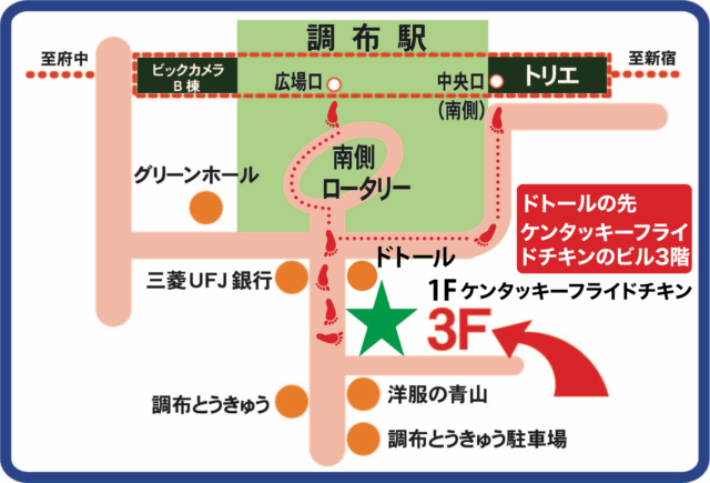 京王線 調布駅中央口(南口)より徒歩2分 ケンタッキーフライドチキンのビル 3F